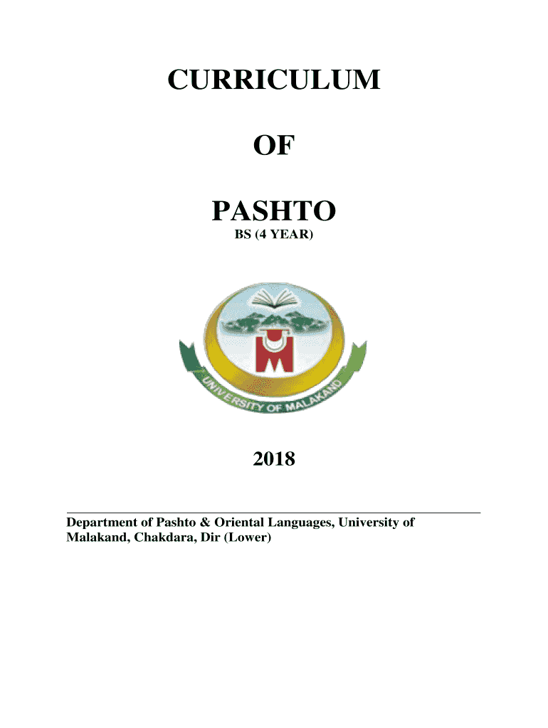 CURRICULUM OF PASHTO BS (4 YEAR)2018 Department of Pashto & Oriental Languages, University of Malakand, Chandra, Dir (Lower)DEPARTMENT OF PASHTO & ORIENTAL LANGUAGESUNIVERSITY OF MALAKAND LAYOUT FOR