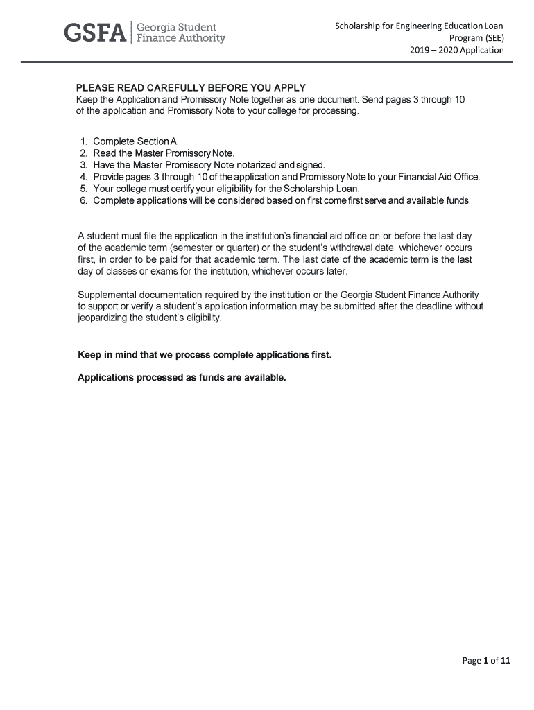 Scholarship for Engineering Education Loan Program (SEE) 2019 2020 Application PLEASE READ CAREFULLY BEFORE YOU APPLY Keep the Application and Promissory Note together as one document. Send pages