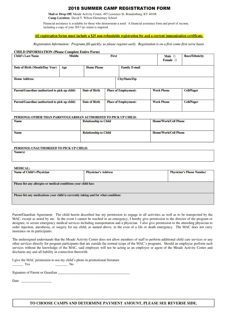 2018 SUMMER CAMP REGISTRATION FORM