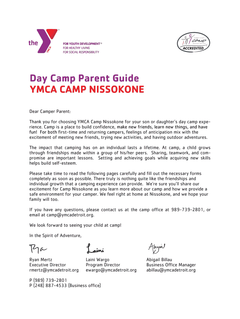 Thank you for choosing YMCA Camp Nissokone for your son or daughters day camp experience. Camp is a place to build confidence, make new