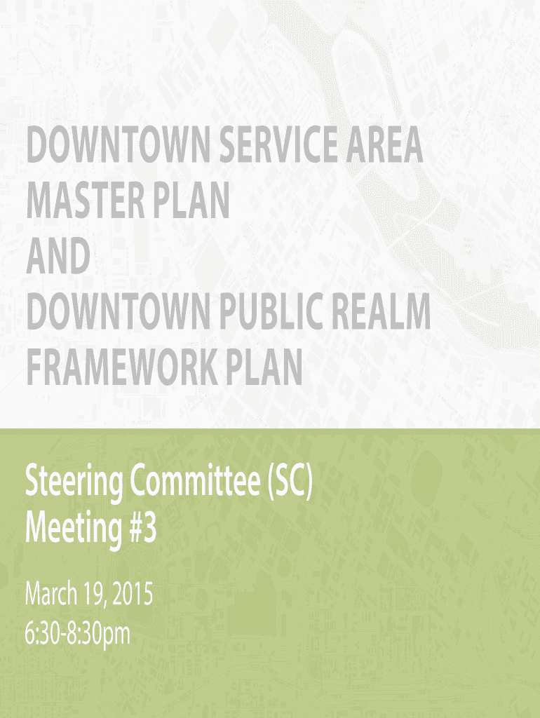 DOWNTOWN SERVICE AREA MASTER PLAN AND DOWNTOWN PUBLIC REALM FRAMEWORK PLAN Steering Committee (SC) Meeting #3 March 19, 2015 6:308:30pmMEETING AGENDA Welcome/Introduction Project Identity Report on