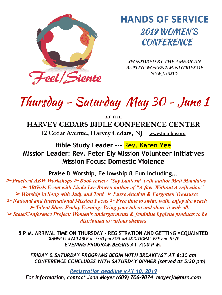 3/20/2019ABW conference 2018 registration form EDIT Google Docklands OF SERVICE 2019 WOMEN CONFERENCE SPONSORED BY THE AMERICAN BAPTIST WOMEN MINISTRIES OF NEW JERSEY Thursday Saturday, May 30 June