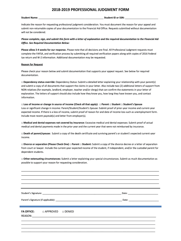 Edit your 2018-2019 professional judgment request form online