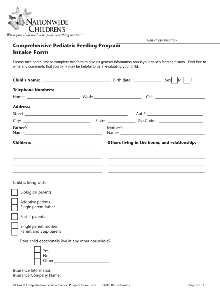 Get the free Feeding Program Intake Form - Nationwide Children's Hospital
