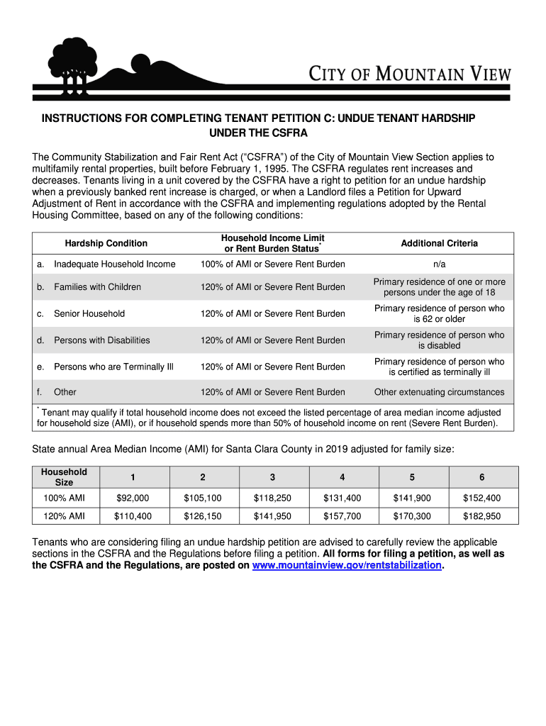 INSTRUCTIONS FOR COMPLETING TENANT PETITION C: UNDUE TENANT HARDSHIP