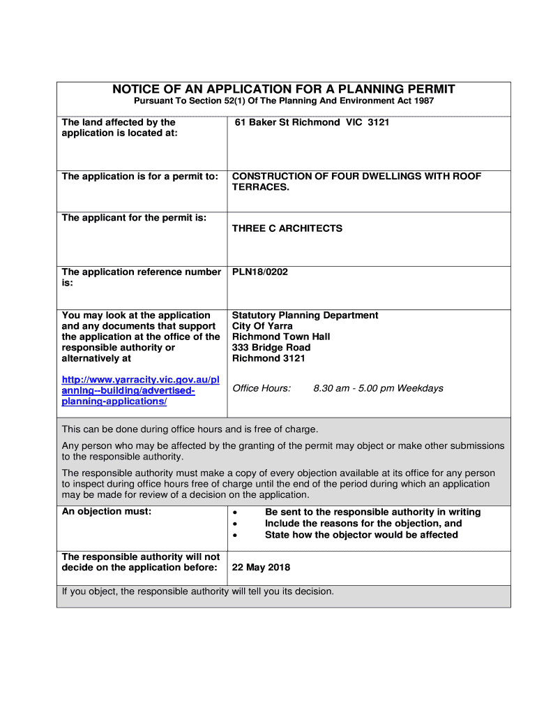 NOTICE OF AN APPLICATION FOR A PLANNING PERMIT