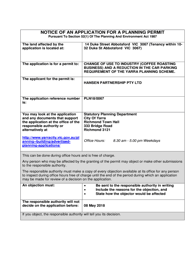 application is located at:14 Duke Street Abbotsford VIC 3067