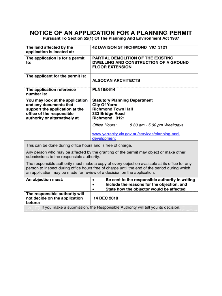 application is located at:42 DAVISON ST RICHMOND VIC 3121The