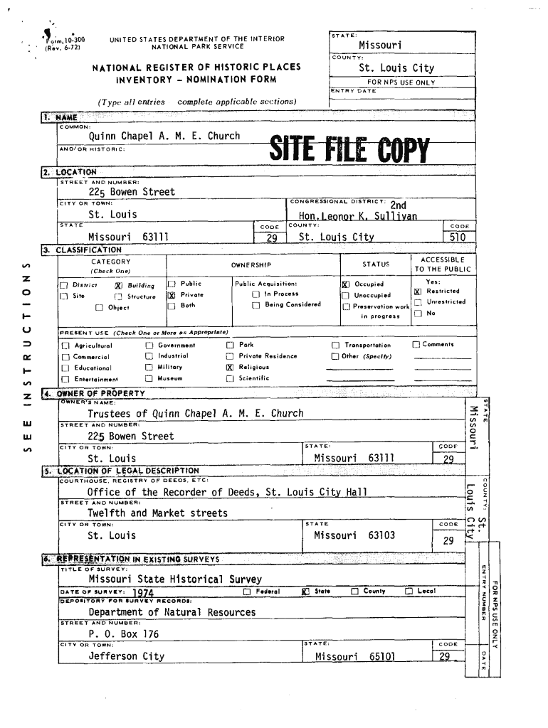 .,Form.10300STATE:UNITED st DATES DEPARTMENT OF THE INTERIOR NATIONAL PARK SERVICE(Rite. 672)Missouri COUNTY:NATIONAL REGISTER OF HISTORIC PLACES INVENTORY NOMINATION Format. Louis City FOR NPS USE