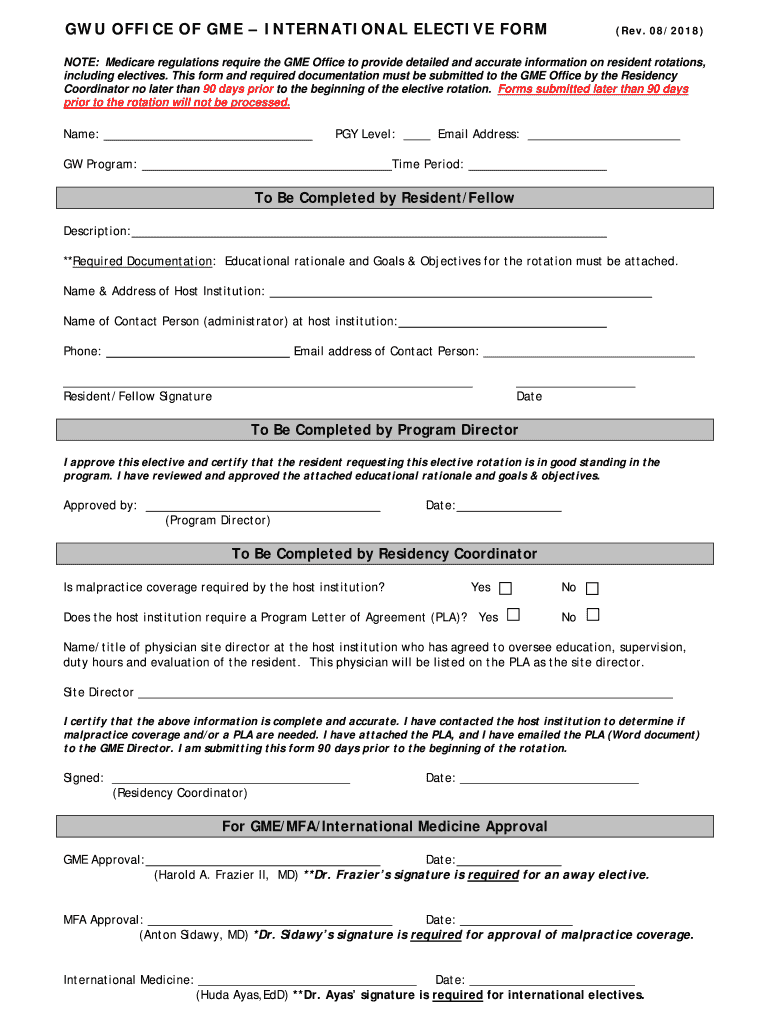 Get the free GWU OFFICE OF GMEINTERNATIONAL ELECTIVE FORM ...