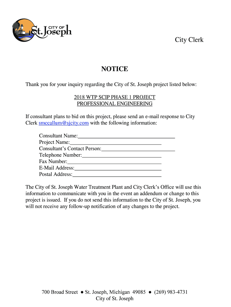 Thank you for your inquiry regarding the City of St. Joseph project listed below: