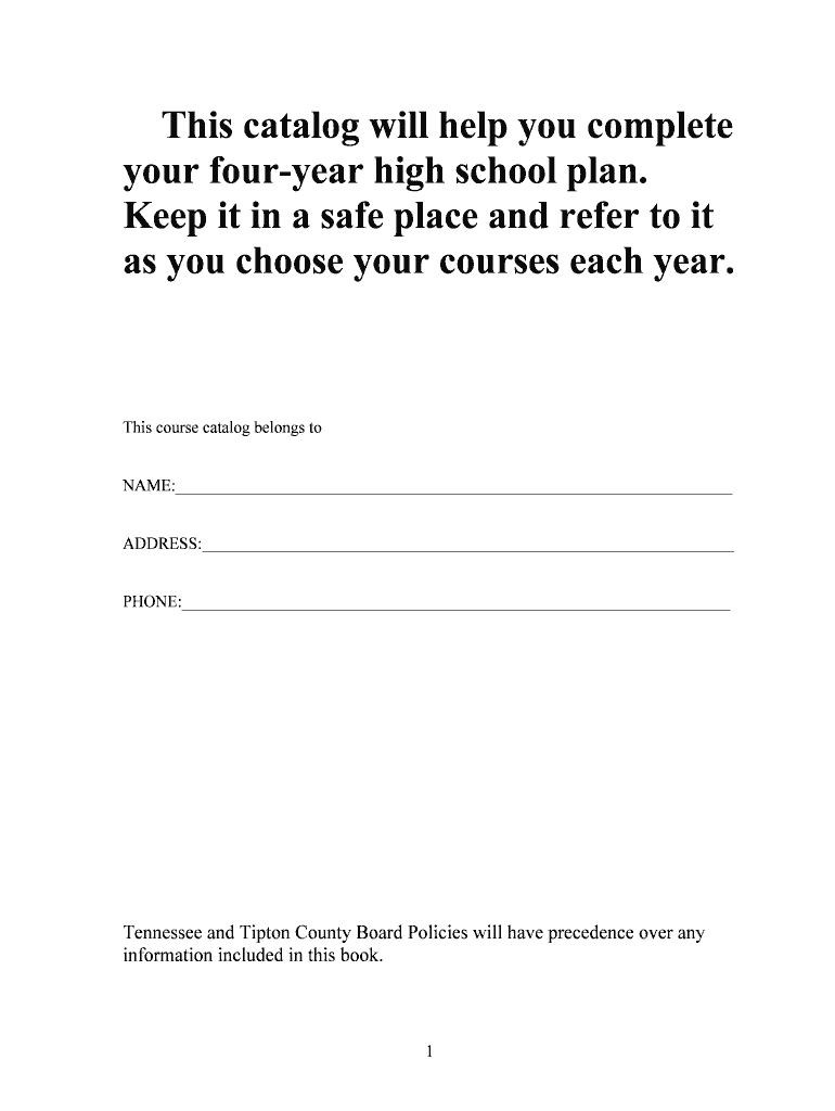 This catalog will help you complete your Fourier high school plan. Keep it in a safe place and refer to it as you choose your courses each year. This course catalog belongs to NAME: ADDRESS: PHONE: