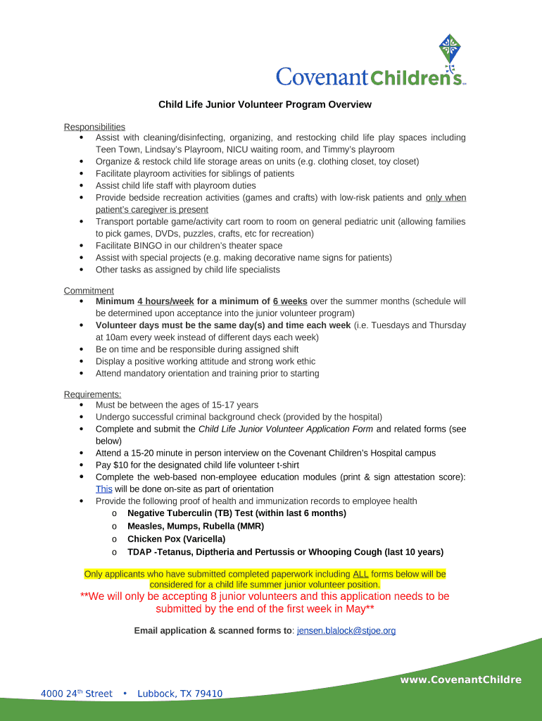 Template Child Life Junior Volunteer Program Overview ... instructions