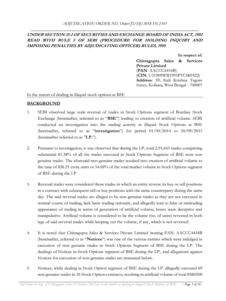 ADJUDICATION ORDER NO. Order/JS/DJ/201819/2345