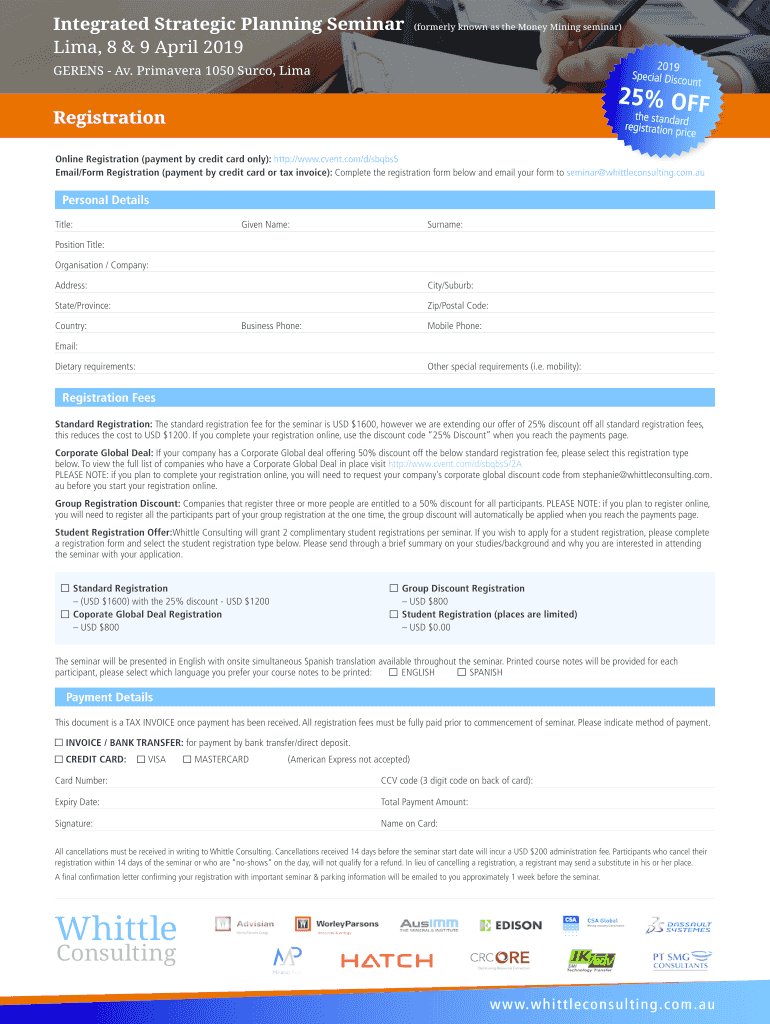 Integrated Strategic Planning Seminar Lima, 8 & 9 April 2019(formerly known as the Money Mining seminar)2019 Special Discoverers Av. Primavera 1050 Such, Limaunt25% OFFRegistrationthe stand registration