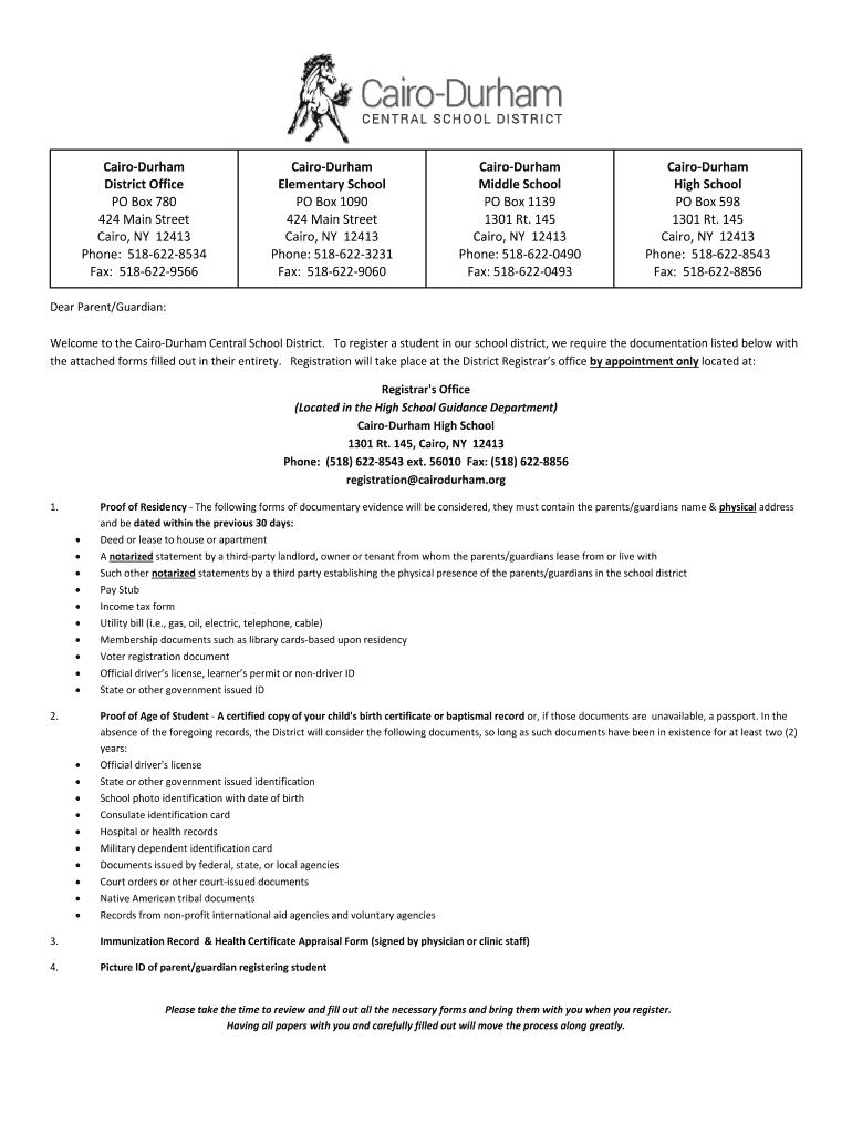 Parents or guardians of students attending Cairo-Durham Central School are required to file tax information.