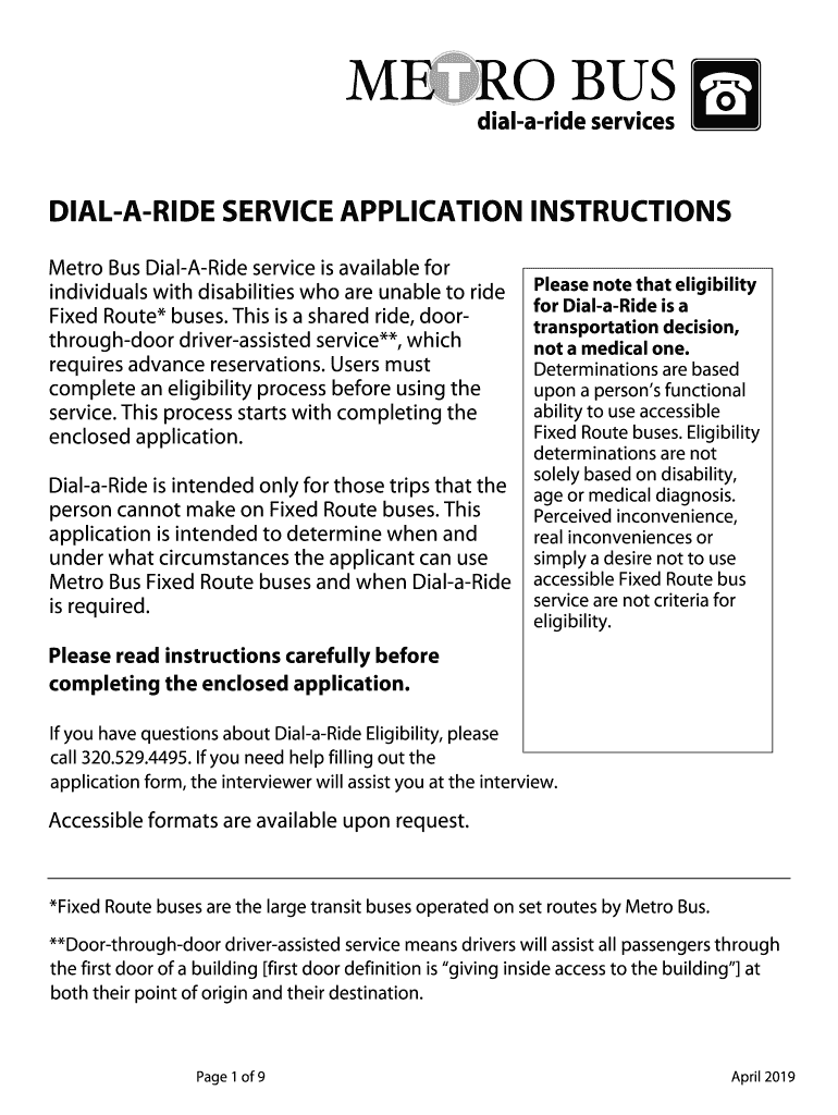 Get the free DIAL-A-RIDE SERVICE APPLICATION INSTRUCTIONS
