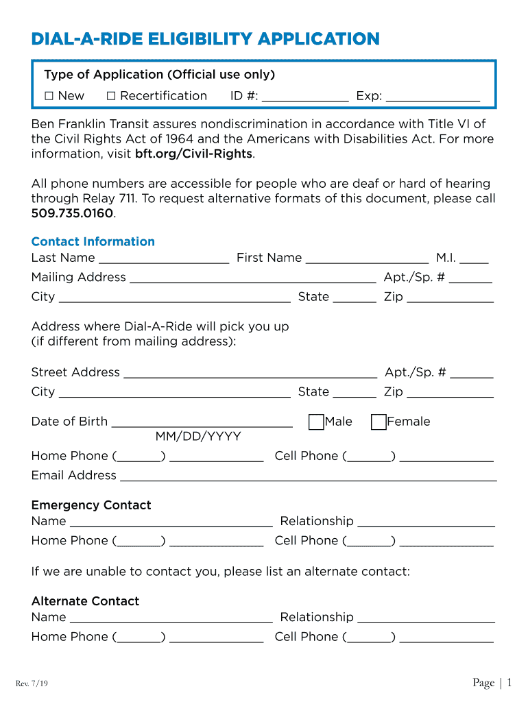 DialARideChecklist & Eligibility Application Thank you for your interest in Ben Franklin Transits Salaried para transit service. If you are seeking eligibility for service, you must complete the entire