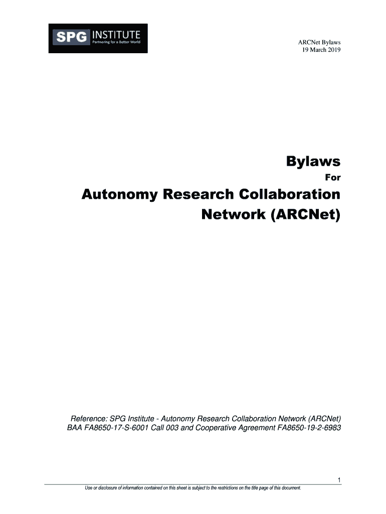 Arched Bylaws 19 March 2019Bylaws Autonomy Research Collaboration Network (Arched)Reference: SPG Institute Autonomy Research Collaboration Network (Arched) BAA FA865017S6001 Call 003 and Cooperative