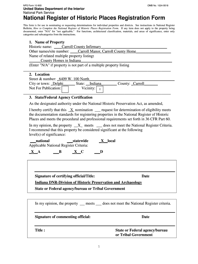 Get the free NPS Form 10-900 OMB No. 1024-0018 United States ... - Indiana