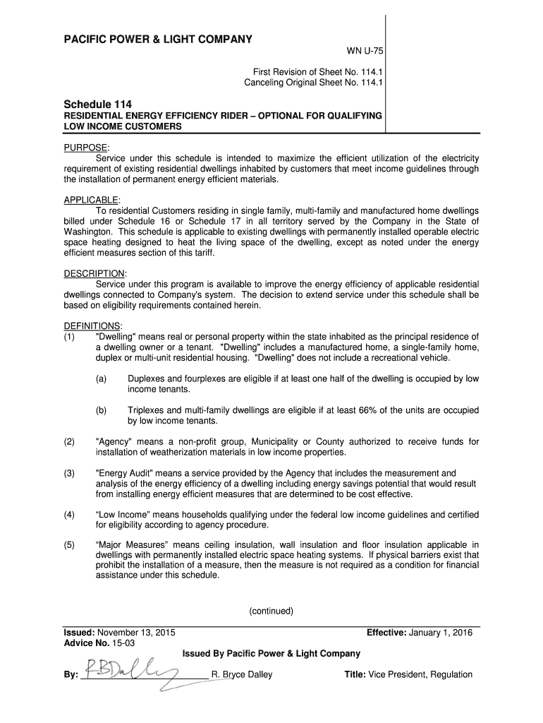 PACIFIC POWER & LIGHT COMPANY IN U75 First Revision of Sheet No. 114.1 Canceling Original Sheet No. 114.1Schedule 114 RESIDENTIAL ENERGY EFFICIENCY RIDER OPTIONAL FOR QUALIFYING LOW INCOME CUSTOMERS