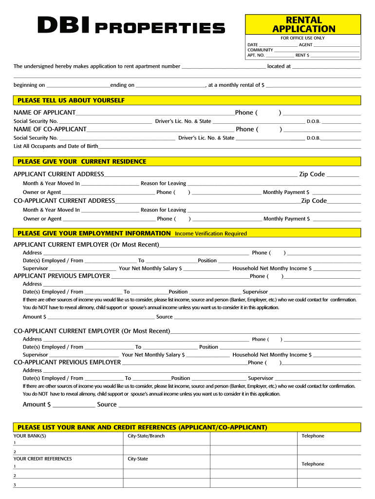 Rental Application For office use only Date Agent community apt. No. rent $ The undersigned hereby makes application to rent apartment number located at beginning on ending on, at a monthly rental