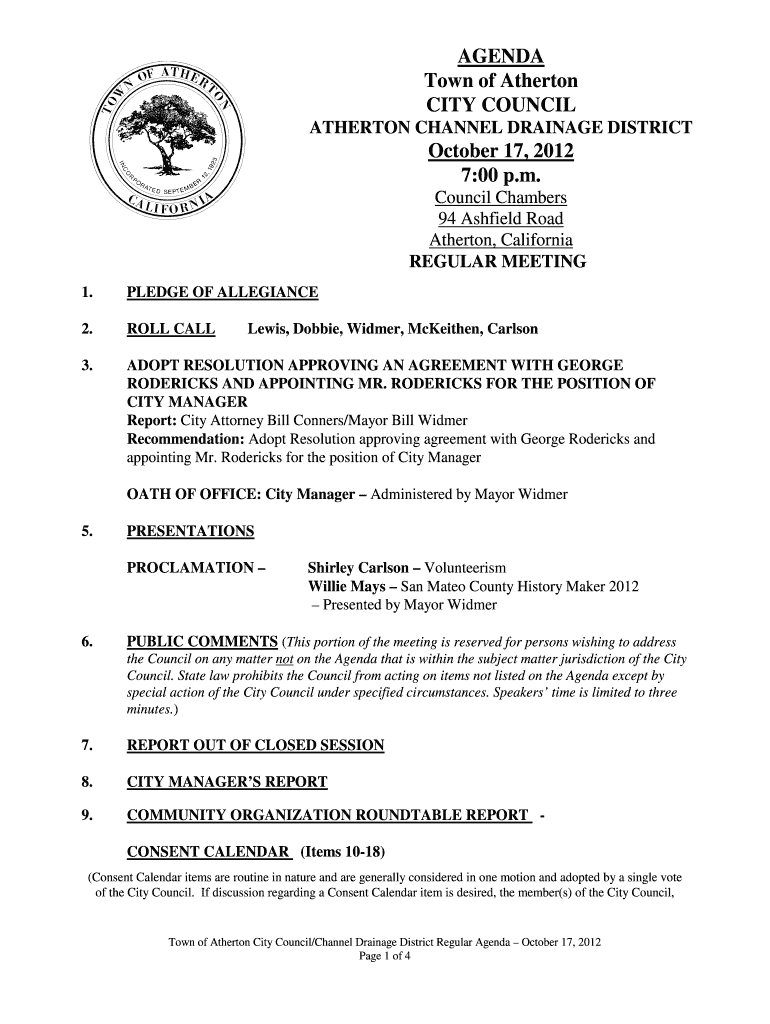 Get the free City Council - TownofAthertonAtherton, CA - Official Website
