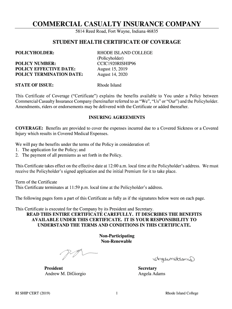 5814 Reed Road, Fort Wayne, Indiana 46835STUDENT HEALTH CERTIFICATE OF COVERAGE