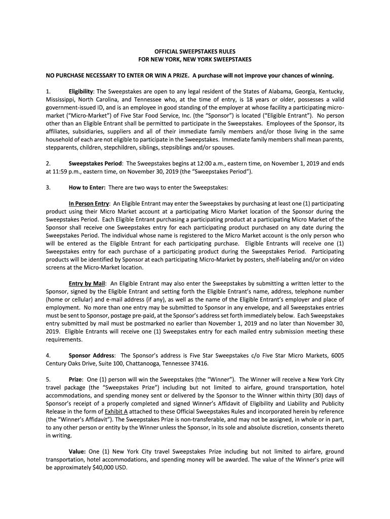 Get the free FOR NEW YORK, NEW YORK SWEEPSTAKES