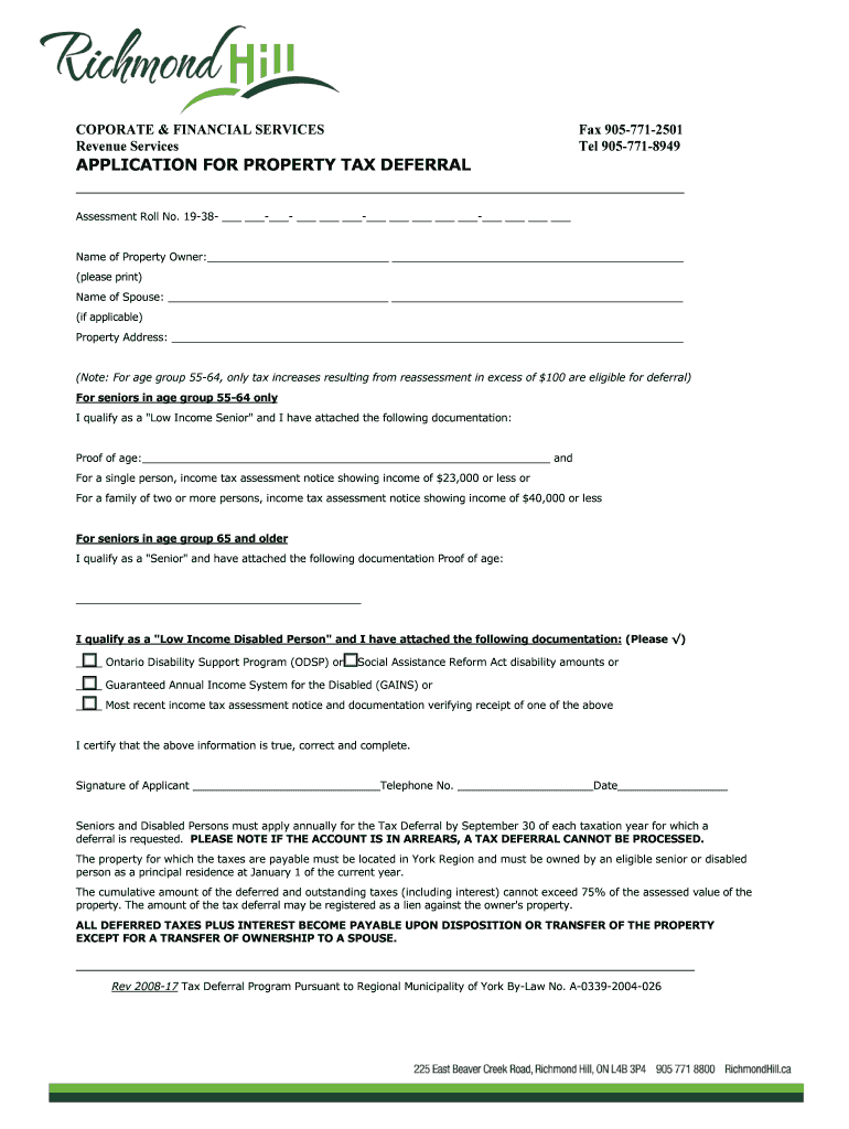 Get the free APPLICATION FOR DEFERRAL OF PROPERTY TAXES FOR LOW-INCOME ...