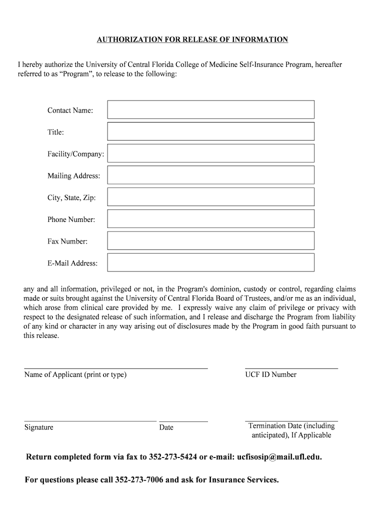 Get the free I hereby authorize the University of Central Florida ...