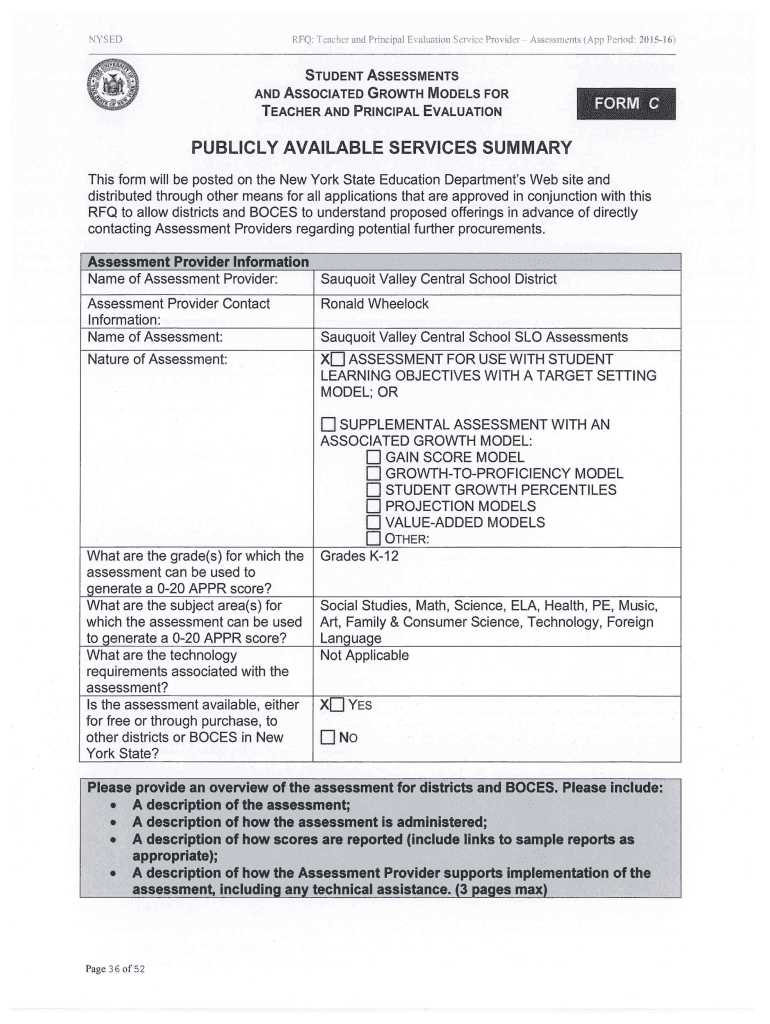 Get the free Sauquoit Valley CSD Developed Course-Specific Assessment. Assessment RFQ Form C and H