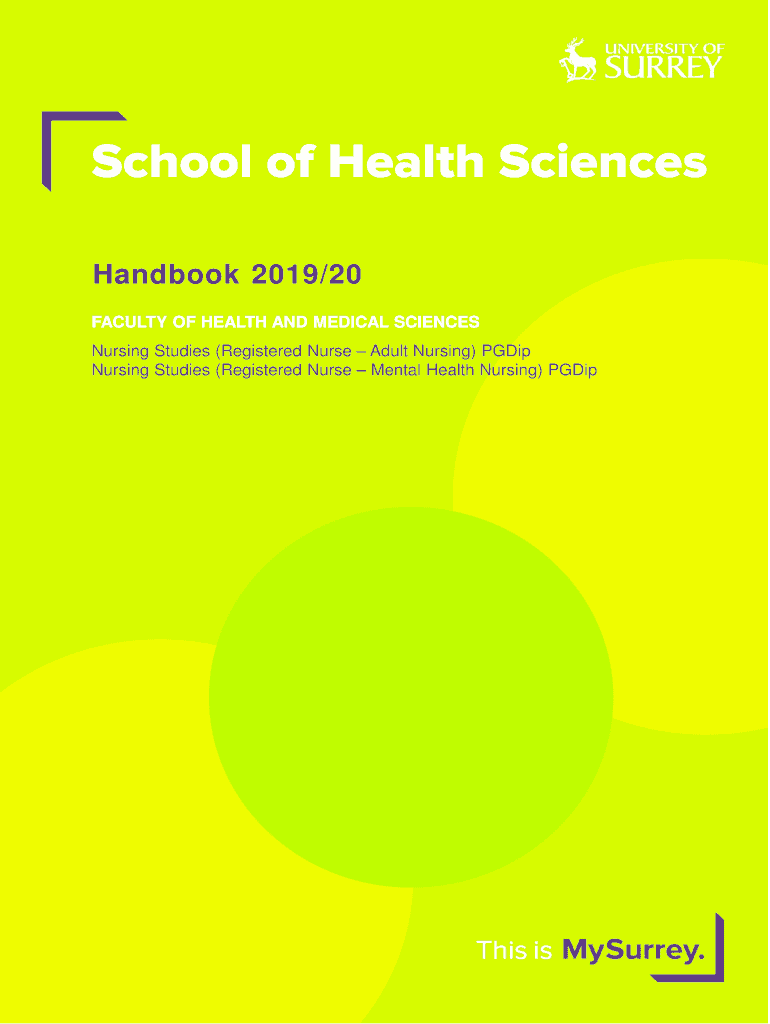School of Health Sciences Handbook 2019/20 FACULTY OF HEALTH AND MEDICAL SCIENCES Nursing Studies (Registered Nurse Adult Nursing) GDP Nursing Studies (Registered Nurse Mental Health Nursing) PGDipWelcome
