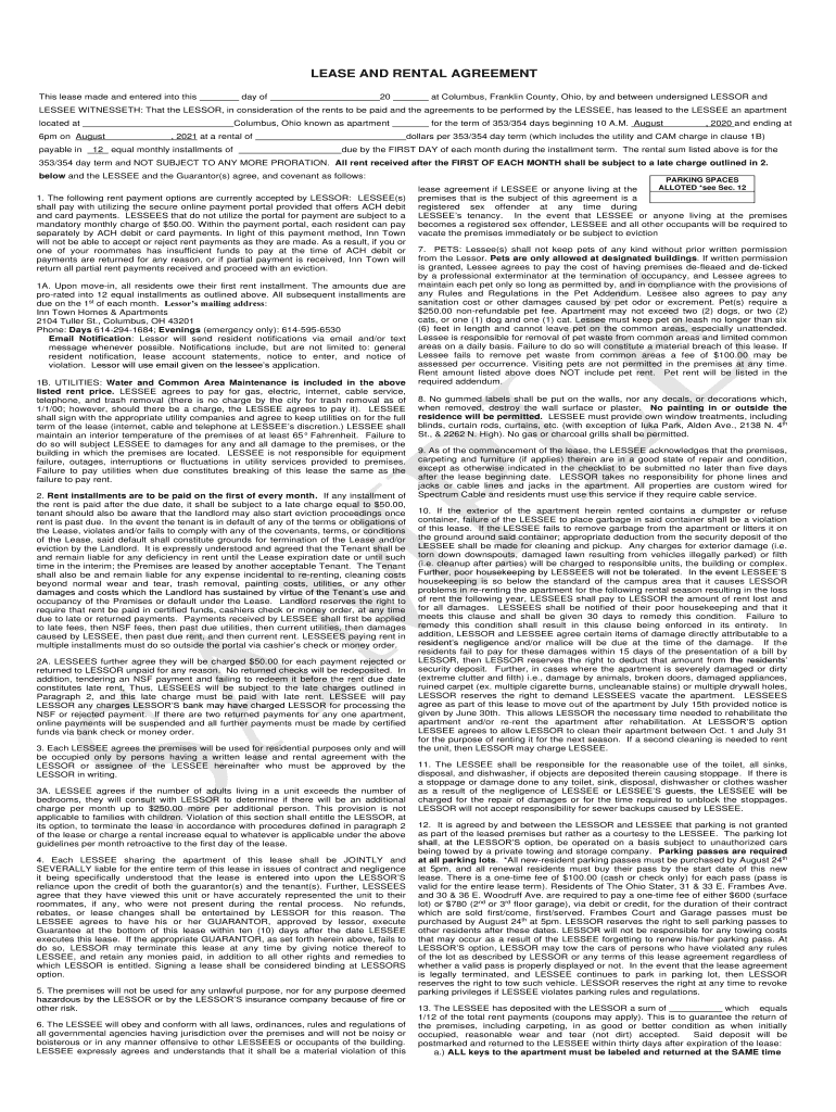 This lease made and entered into this day of20at Columbus, Franklin County, Ohio, by and between undersigned LESSOR addressee WITNESSED: That the LESSOR, in consideration