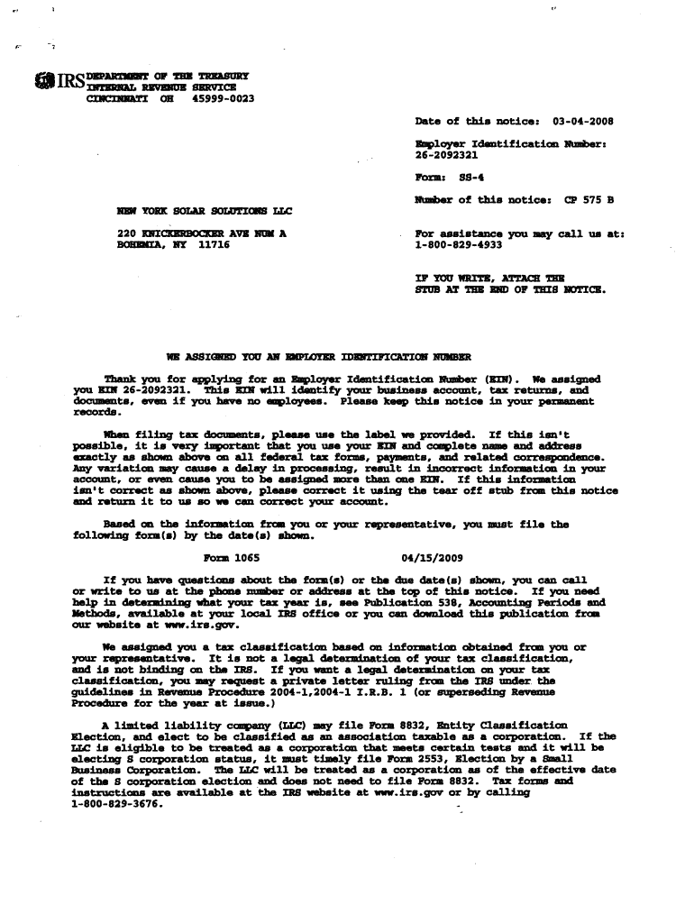 . Date of this notice:030t2008Blllployer :IC:Justification Jabber: 262092321 l 'of’m:SS4Rulllber of this notice:220 D:ICABRBOCIJ5k AVB Roll A BOBBIE:IA, NY 11716CP 575 Boor assistance you may call