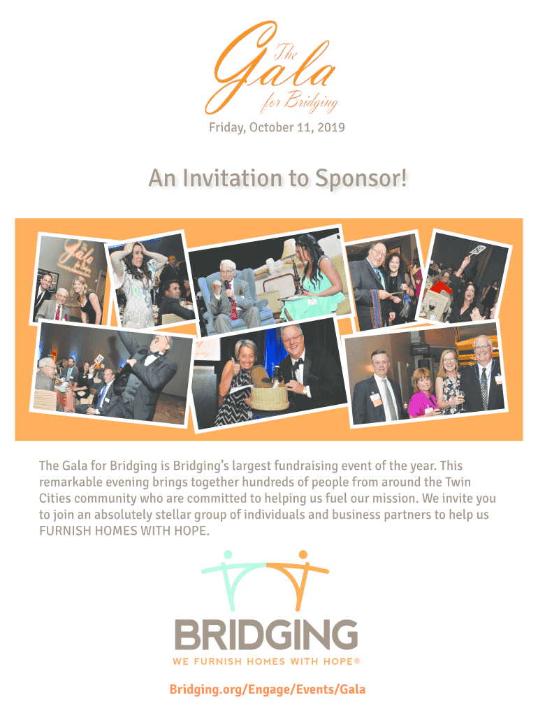 Friday, October 11, 2019An Invitation to Sponsor! The Gala for Bridging is Bridging the largest fundraising event of the year. This