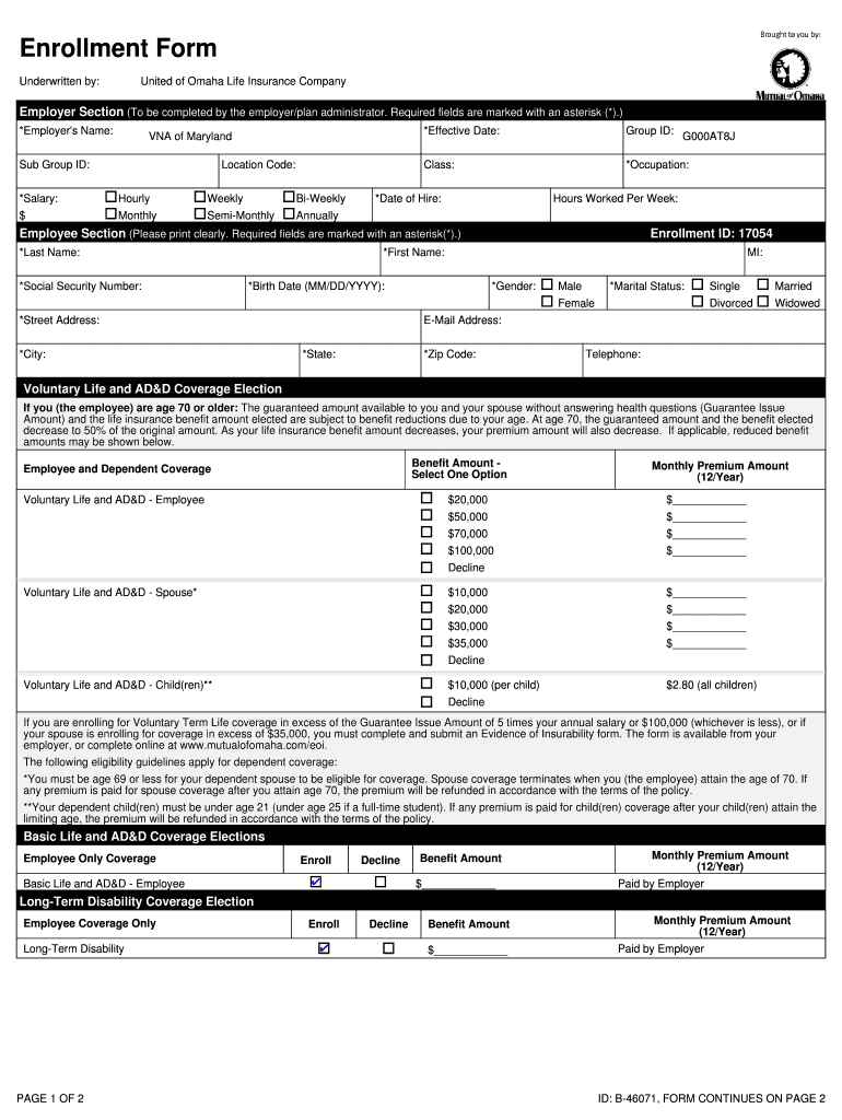 Underwritten by:United of Omaha Life Insurance CompanyEmployer Section (To be completed by the employer/plan administrator. Required fields are marked with an asterisk (*).)