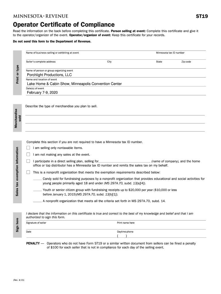 ST19Operator Certificate of Compliance