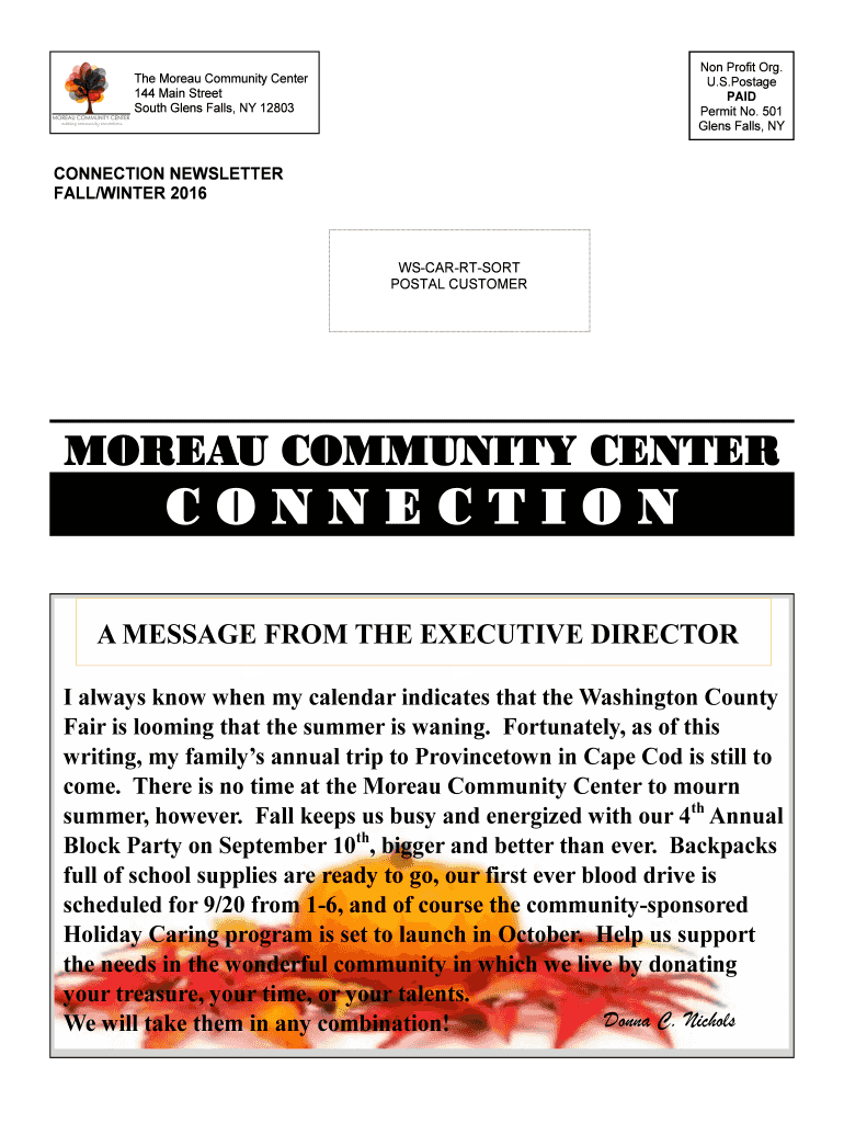 Get the free MOREAU COMMUNITY CENTER C O N N E C T I O N