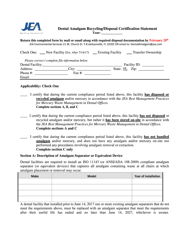 Get the free Dental Amalgam Recycling/Disposal Certification Statement ...