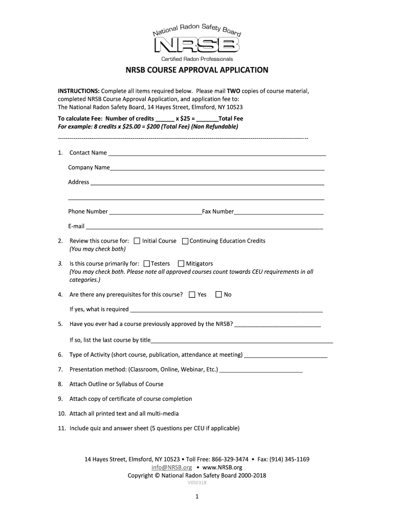 NTSB COURSE APPROVAL APPLICATION INSTRUCTIONS: Complete all items required below. Please mail TWO copies of course material, completed NTSB Course Approval Application, and application fee to: The