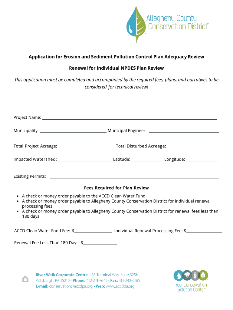 Get the free Application for Adequacy Review of Erosion and Sediment ...