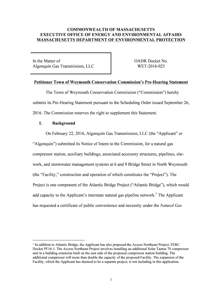 MASSACHUSETTS DEPARTMENT OF ENVIRONMENTAL PROTECTION In the Matter of