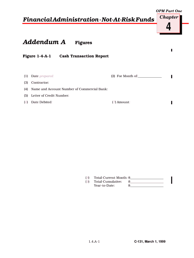 OPM Part Financial Administration Notation FundsAddendum A Figure 14A1ChapterFiguresCash Transaction Report(1)Date prepared(2) For Month of: (3)Contractor:(4)Name and Account Number of Commercial