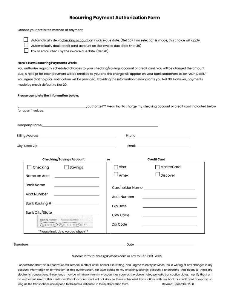 Choose your preferred method of payment:Automatically debit checking account on invoice due date. (Net 30) If no selection is made, this choice will apply. Automatically