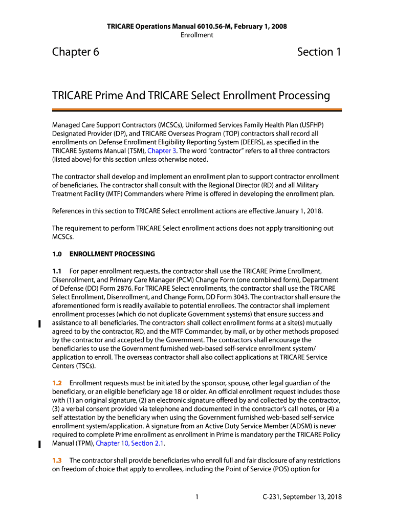 EnrollmentChapter 6Section 1TRICARE Prime And TRI CARE Select Enrollment Processing