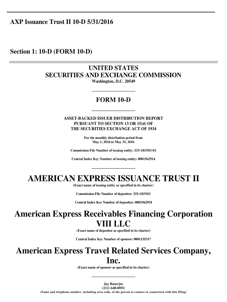 AXP Issuance Trust II 10D 5/31/2016Section 1: 10D (FORM 10D)