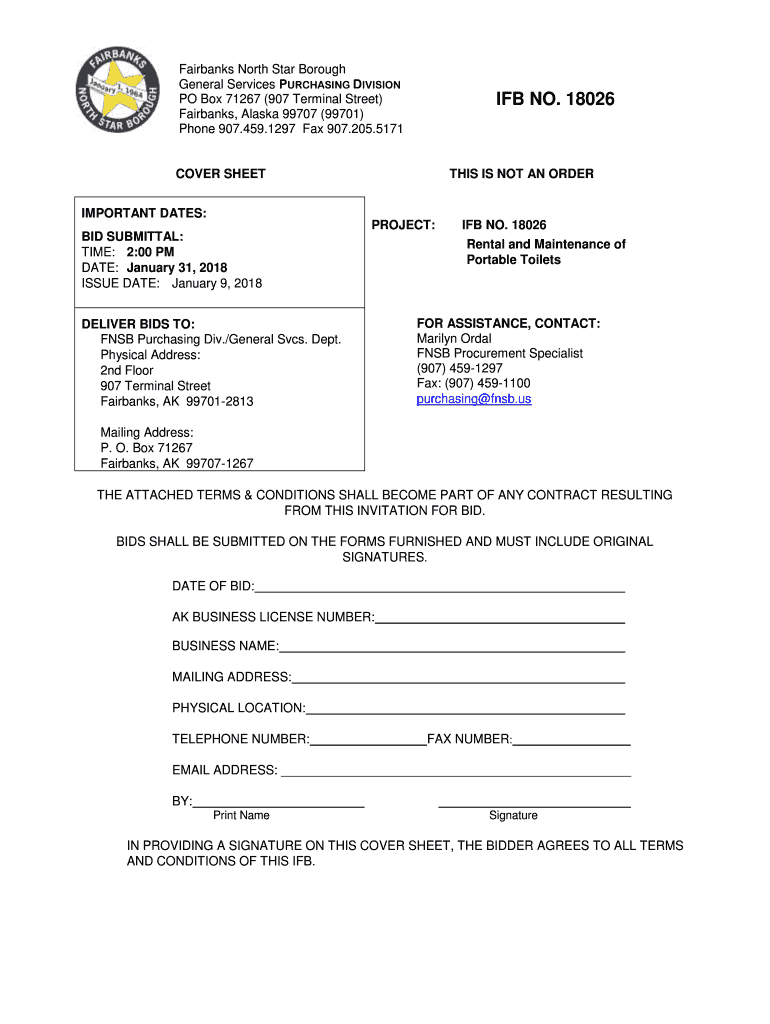 Phone 907.459.1297 Fax 907.205.5171IFB NO. 18026COVER SHEET
