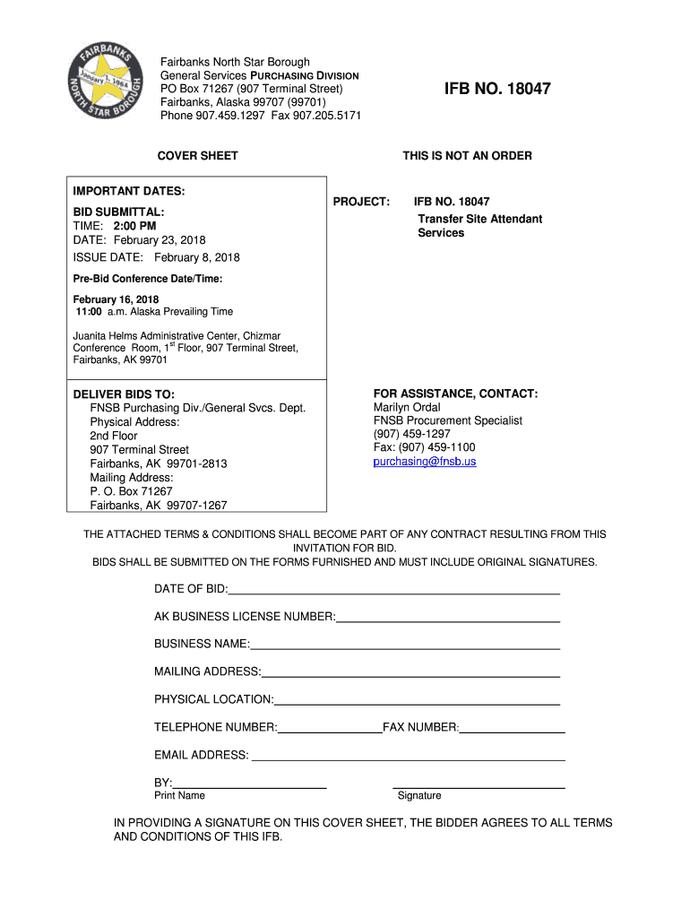 Phone 907.459.1297 Fax 907.205.5171IFB NO. 18047COVER SHEET
