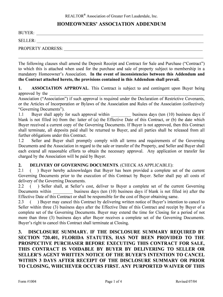 Both the buyer and seller are required to sign the Homeowners’ Association Addendum to ensure that all parties are in agreement with the conditions stipulated by the HOA.